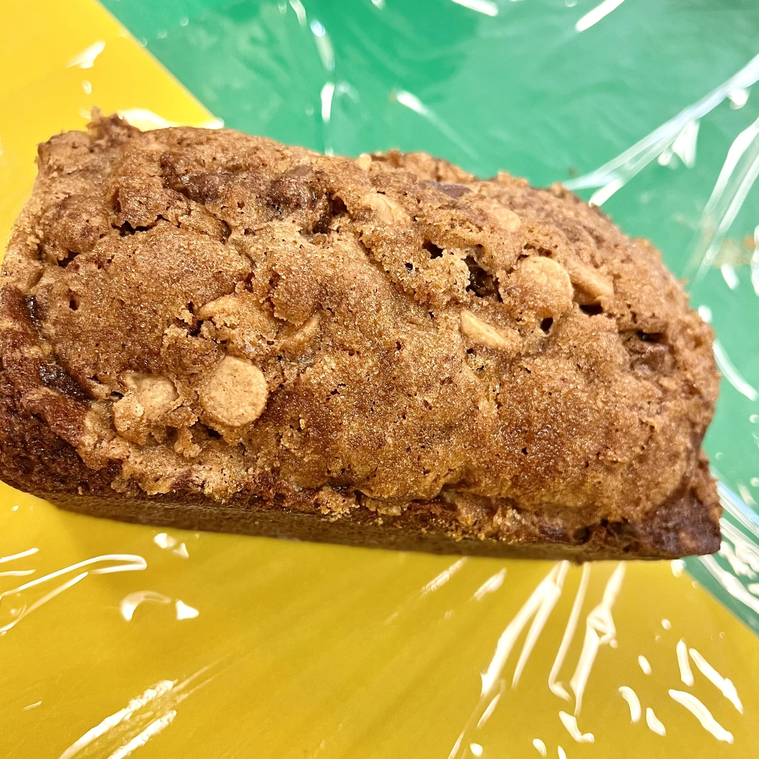 Our banana bread loaf loaded with Reese’s peanut butter morsels and milk chocolate chips. It has a super moist texture with a hint of cinnamon and spice. Topped with our signature brown sugar crust and more Reese’s peanut butter morsels and milk chocolate chips.